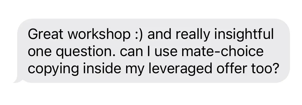 You’ll walk away with clarity on your positioning, your leveraged offer, and the entire Pre-Selection Conditioning framework.