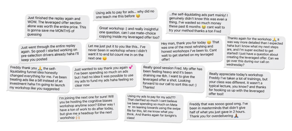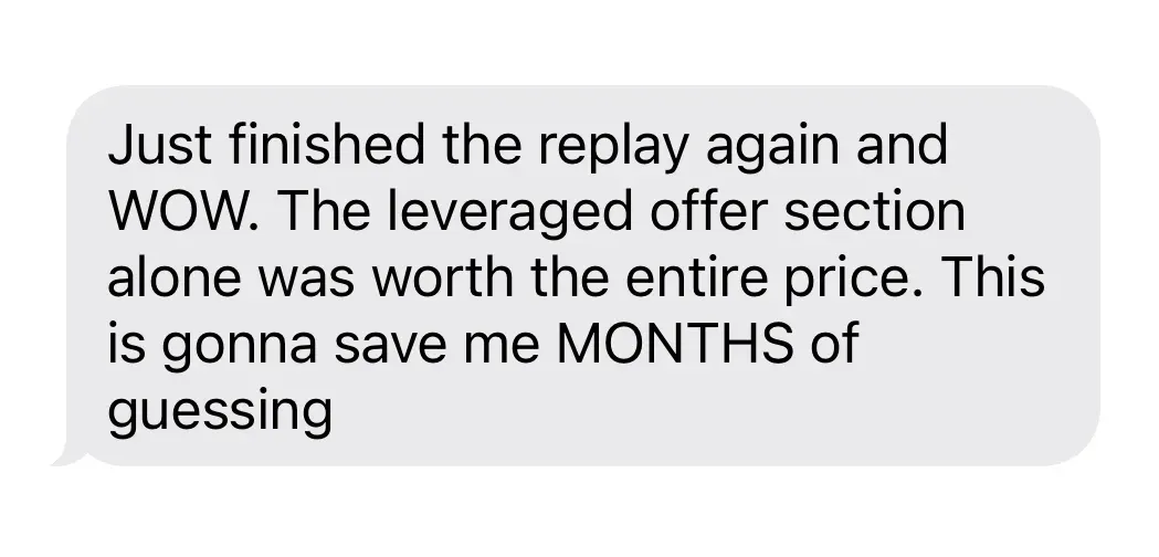 You get full replay access so you can rewatch, pause, take notes, rewind the psychological frameworks, and rebuild your offer/funnel at your own pace.
